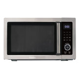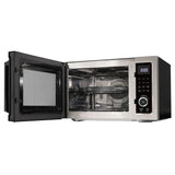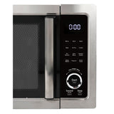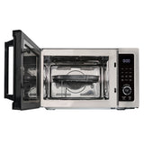 5 in 1 Multifunctional microwave oven with airfry, convection roast/bake, broil/grill, 9 auto menu programs, and combination micro/convection or micro/grill cooking. 1000 watts, 10 power levels, stainless steel interior and exterior, electronic controls, automatic turntable and interior light, child lock, LED clock with timer.